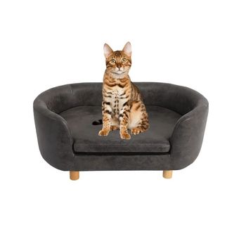 Sıcak satış lüks küçük Pet ahşap çerçeve ile çekyat yüksek kaliteli PU kumaş katı keten tarzı köpekler ve kediler için